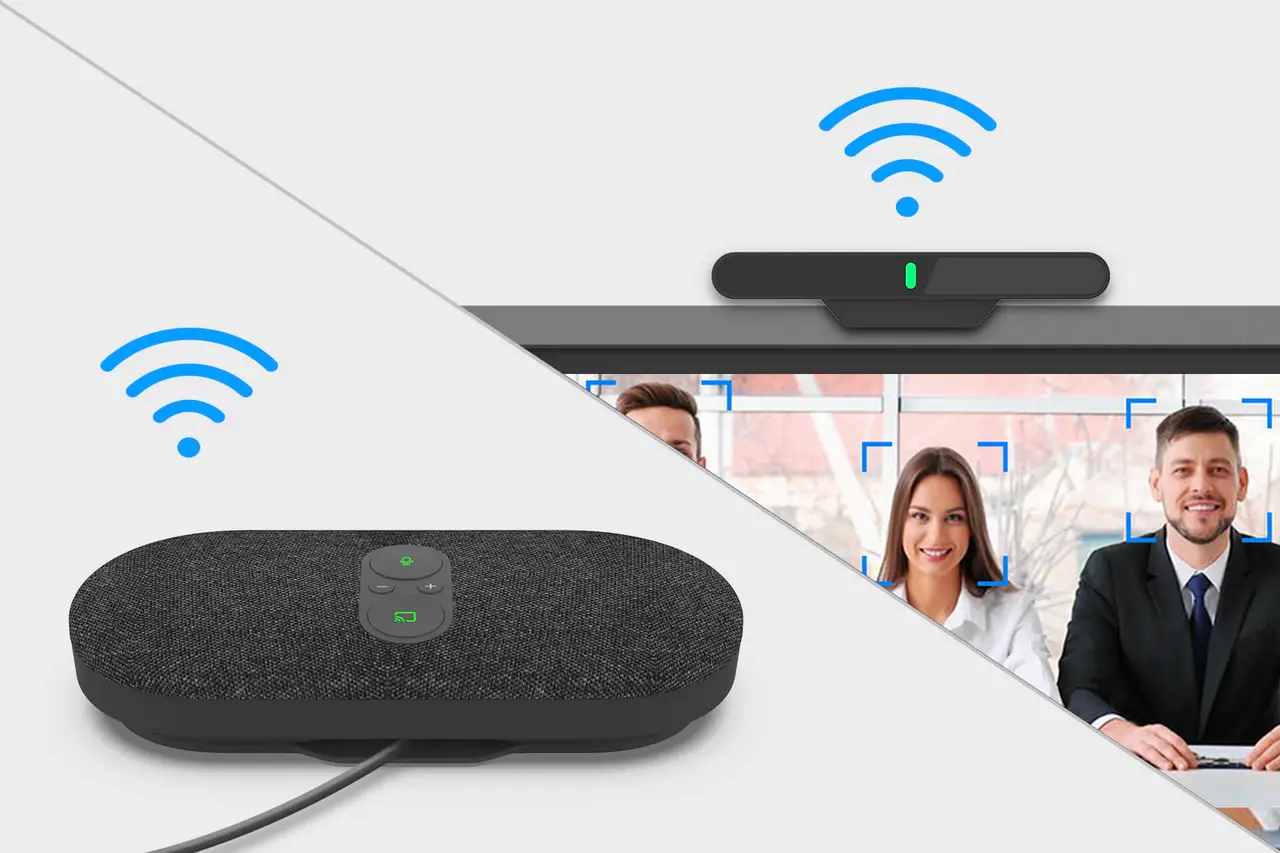 Wireless compact™ umfasst eine Freisprecheinrichtung und einen Empfänger, und mit nur einem Klick können Sie Ihr Laptop-Display mühelos auf einen großen Bildschirm übertragen, damit jeder im Raum es sehen kann. Greifen Sie drahtlos auf Ihre Konferenzkamera zu, ohne sich Gedanken über die Länge des Kabels machen zu müssen. Schließen Sie alle Ihre Videokonferenz-Peripheriegeräte an. Sie müssen lediglich ein einziges Kabel an Ihren Laptop anschließen.